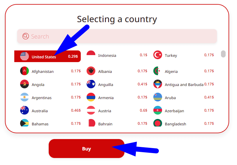 Once you choose the country, you'll see the price for the number of your choice. When ready, press “Buy” and find your new number on your personal page. It’s ready to be used for verification on the platform of your choice.
