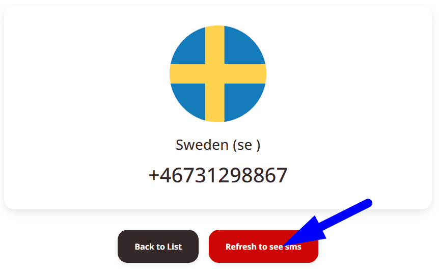 We go to the Tiger SMS website to the page of the number of interest. Click the "Refresh and see SMS" button.
