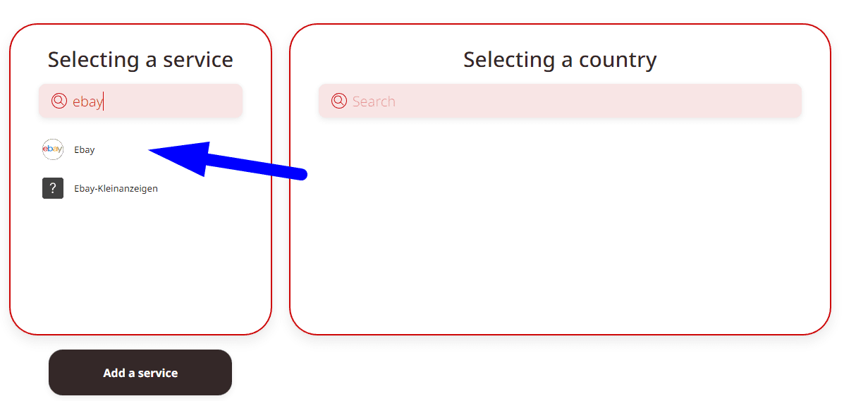 Find your service (eBay, for example) in the list and choose the country of the telephone number;