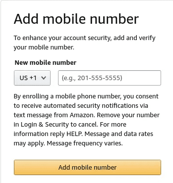 Go to the registration window. As in the previous section, the analysis will be performed using Amazon as an example. Enter the previously purchased virtual number, and after filling out the form, an SMS will be sent.