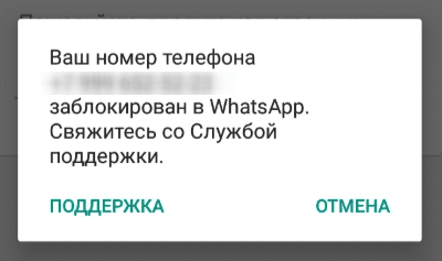 Блокировка номера WhatsApp