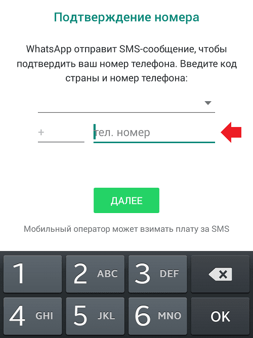 Начинается второй этап того, как обойти блокировку Ватсап если тебя заблокировали. Создаем профиль в мессенджере по стандартной схеме. Когда система требует ввести мобильный, указываем купленный виртуальный номер.
