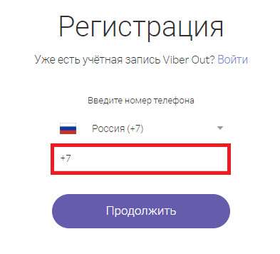 Переходим к приложению или программе Viber. Нас интересует страница регистрации, где вводится виртуальный номер из прошлых пунктов. Это позволит сделать 2 аккаунта Вайбер. Когда номер введен, нажимаем «Продолжить», система отправит СМС с кодом подтверждения.
