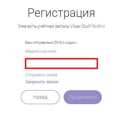Снова переходим к окну регистрации Viber. Здесь нужно указать код авторизации из прошлого пункта. Вставляем его в соответствующее окно и завершаем процесс создания учетной записи.