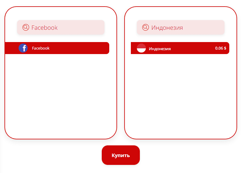 На данном этапе, мы можем купить виртуальный номер, чтобы создать один или несколько аккаунтов *Фейсбук. Сначала, выбираем сервис, потом указываем страну. Стоимость будет отображаться рядом с государством. Когда выбор сделан, активируется кнопка «Купить». Поскольку список доступных сервисов и стран включает сотни позиций, рекомендуется воспользоваться строкой поиска.