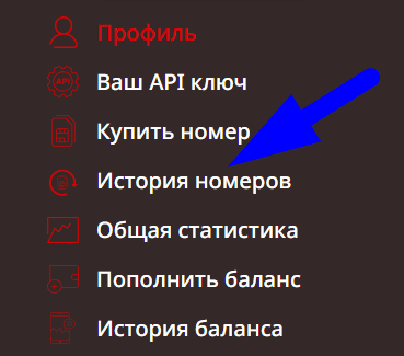 Все купленные пользователем виртуальные номера сохраняются в разделе «История номеров».