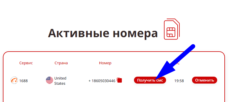Существует универсальное решение – купить виртуальный номер для 1688. Сервис «Tiger SMS» предлагает подобные услуги по минимальной цене. Получение СМС происходит через личный кабинет, можно выбрать номер любой страны, в том числе, Китая. Если сообщение не приходит, достаточно отказаться от номера (средства вернутся на счет) и купить новый.