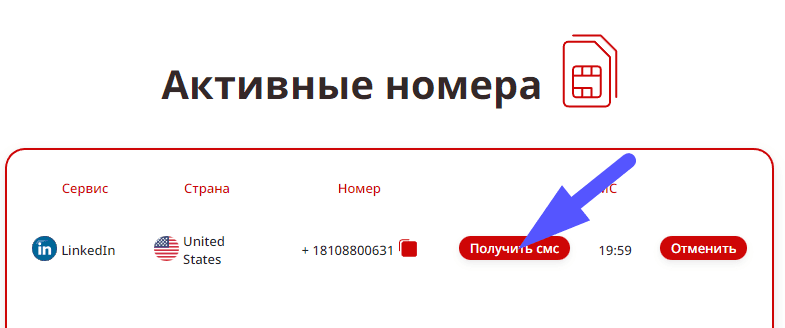 Регистрация с помощью виртуального номера Линкедин происходит в обычном режиме. Единственное отличие в том, что для получения СМС необходимо вернуться в личный кабинет на сайте «Tiger SMS».