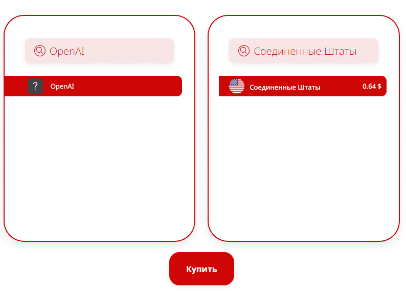 Необходимо купить виртуальный номер для ChatGPT. В левой колонке выбираем название сервиса, в правой указываем страну. Здесь надо отметить, что подойдут не все государства. Первоначально, регистрация была доступна только из США, но потом перечень стран расширился.