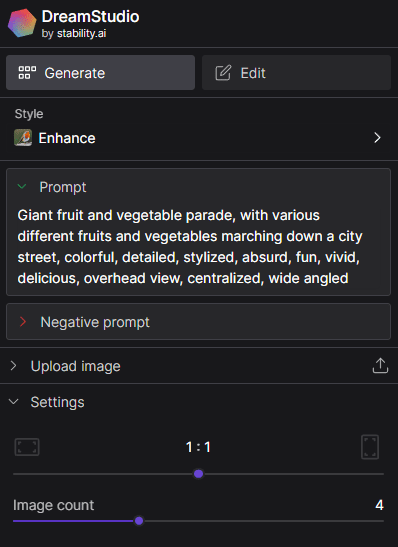 Достаточно ввести запрос, чтобы система всего за несколько секунд выдала 4 изображения. Существует ограничение на генерацию 200 изображений по озвученным ранее причинам. На сайте можно раскрыть меню продвинутых настроек и задать некоторые параметры, куда входит количество выводимых картинок, число шагов генерации и другие моменты.