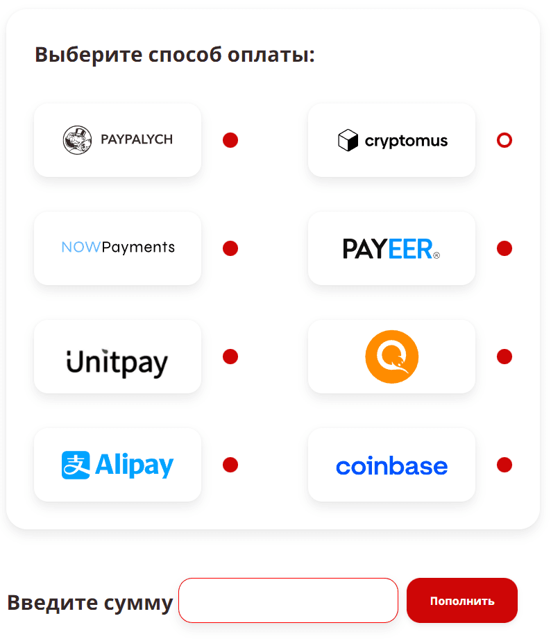 Пополняем счет одним из предложенных способов.