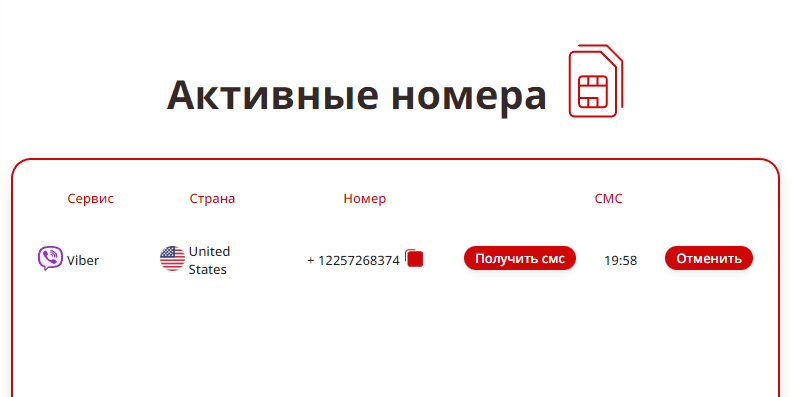 Купленные виртуальные номера сохраняются в особом разделе меню, который называется «История номеров».